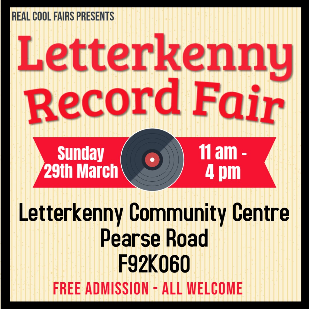 The Letterkenny Record Fair takes place at the Community Centre on Pearse Road. It is located very close to the main Letterkenny Shopping Centre with it’s big brand stores – travelling distance? You could combine a trip!! Refreshments and food all close by.